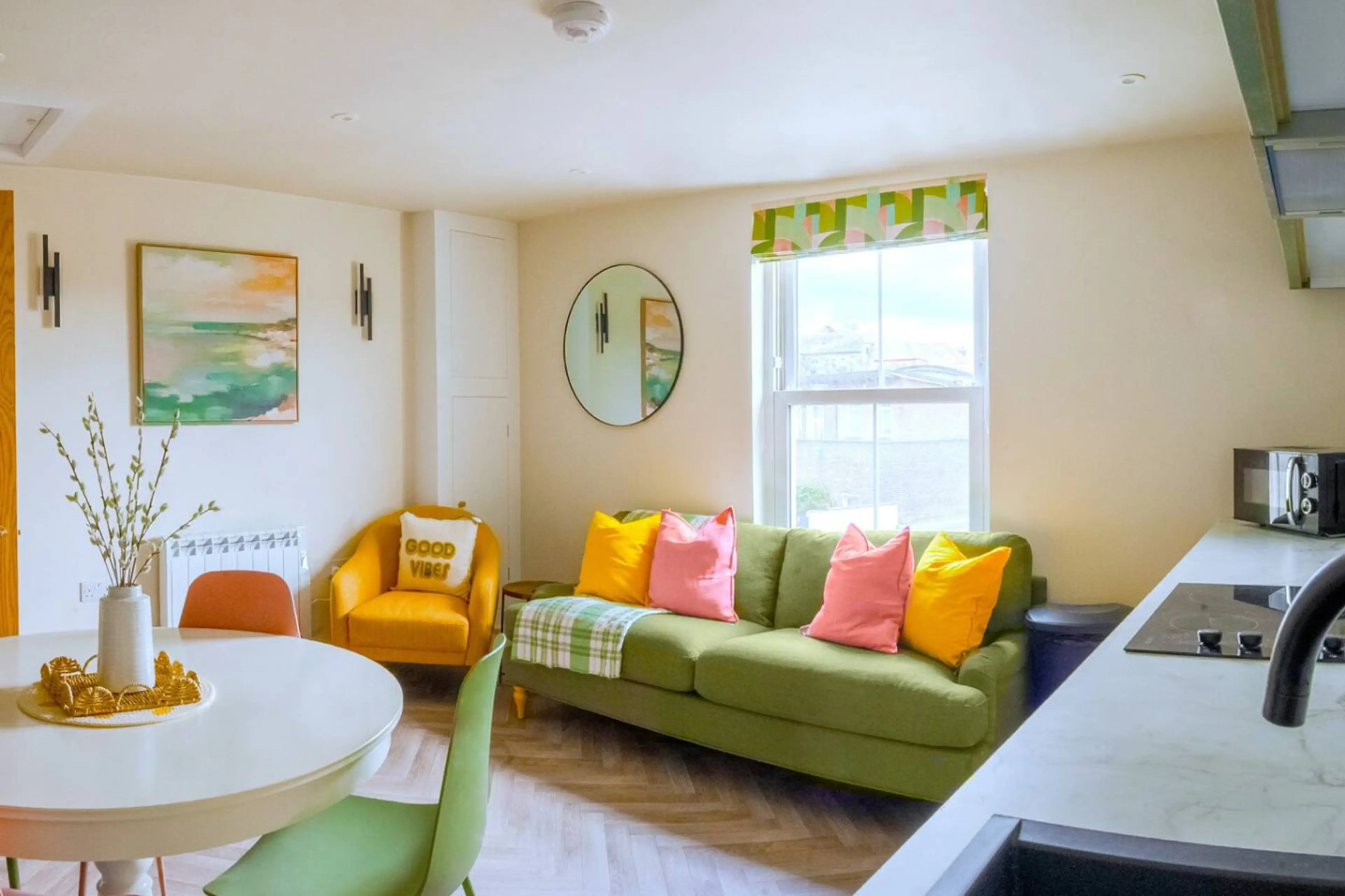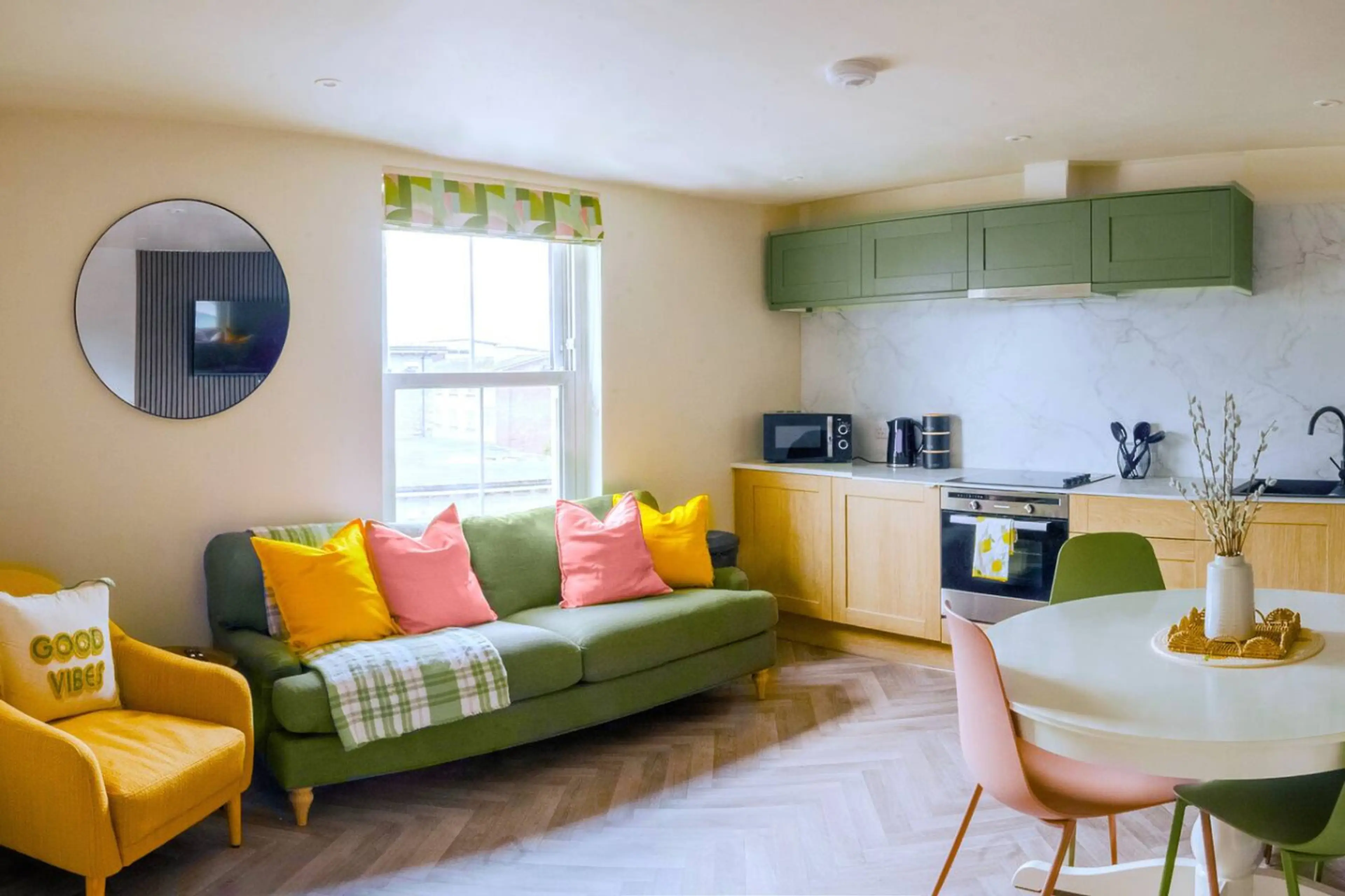 Our Apartments combines quirky charm with modern comfort. This 3-bedroom flat is located in the heart of Plymouth, newly refurbished with modern furnishings. Sleeps up to 6 with 2 doubles and a flexible room that can be converted from a double to 2 singles. Bright open-plan living, kitchen and dinin...